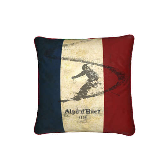 Courchevel Skier, Soft Velvet Chalet Cushion