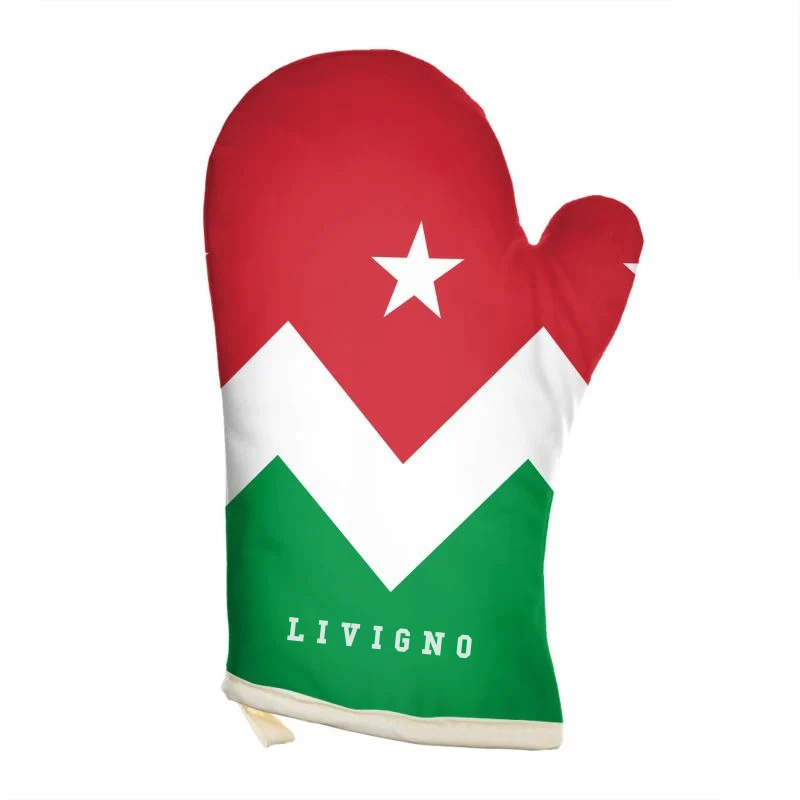 Gant de cuisine à thème chalet rouge, blanc et vert