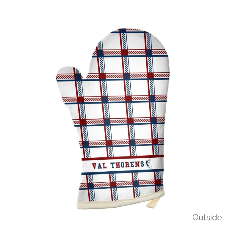 当社の Val Thorens コレクションのこのオーブン グローブをカスタマイズしてください。このスタイリッシュな赤、白、青のチェック柄のシャレー オーブン ミットは、Meribel や Courchevel など、当社の 3 つの Vallees コレクションのいずれとも組み合わせることができます。