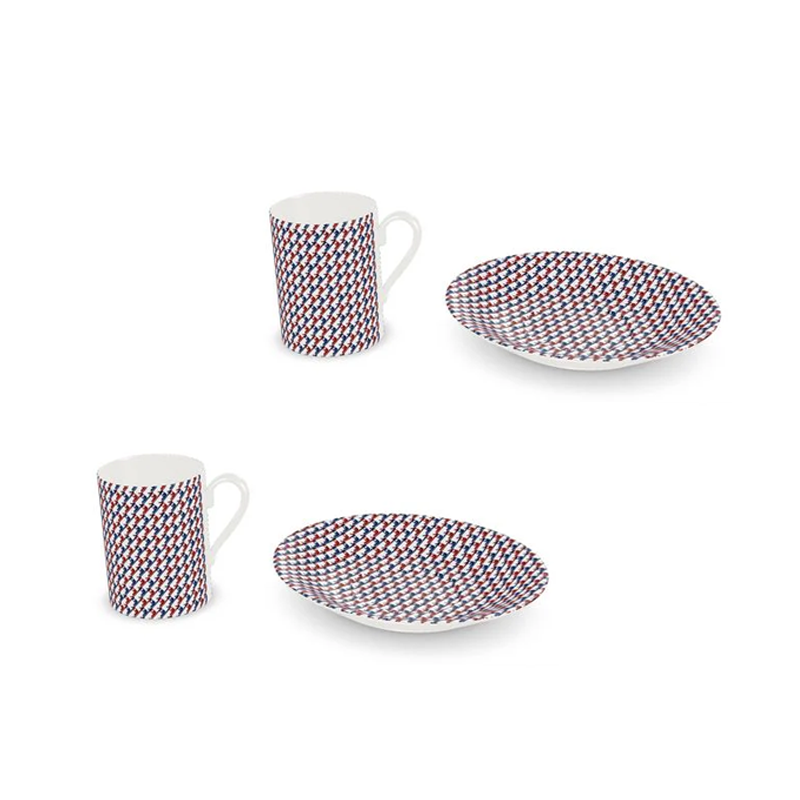 シャレーの朝食テーブルにスタイリッシュにマッチする、伝統的な千鳥格子模様をアレンジした当社のデザインは、赤、白、青のスキーブーツを特徴としており、楽しさと伝統の両方を 1 つのデザインに融合しています。